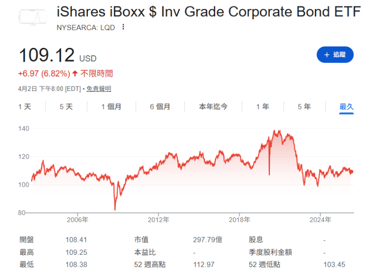 2. LQD - iShares iBoxx投資等級公司債券ETF