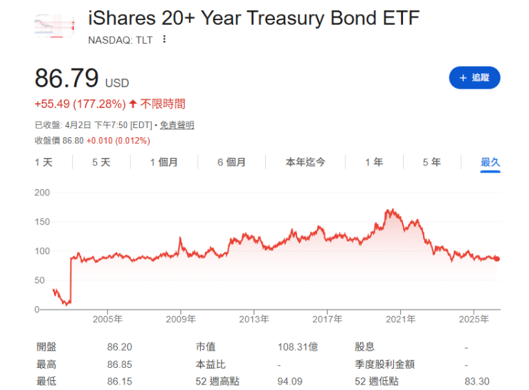 | 主要投資標的 | 美國20年以上政府公債 | 美國20年以上政府公債 |
