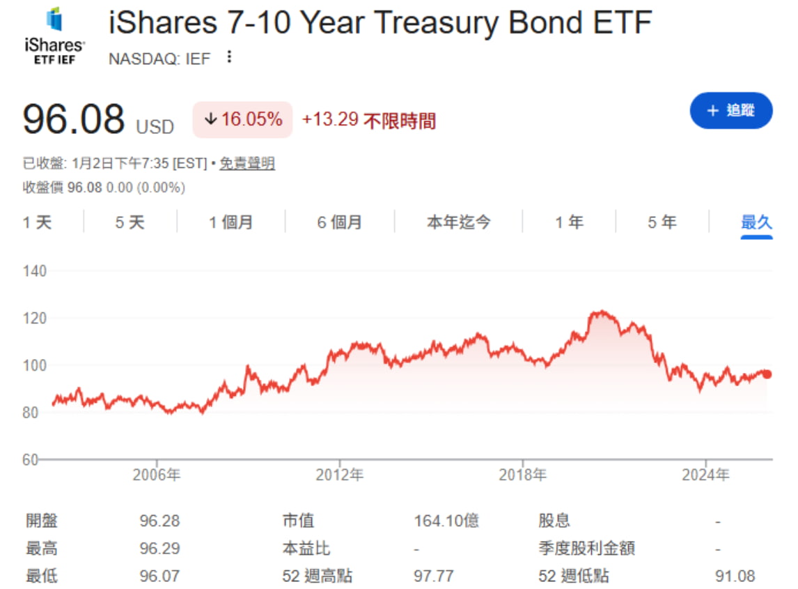 1. IEF - iShares 7-10年期美國公債ETF