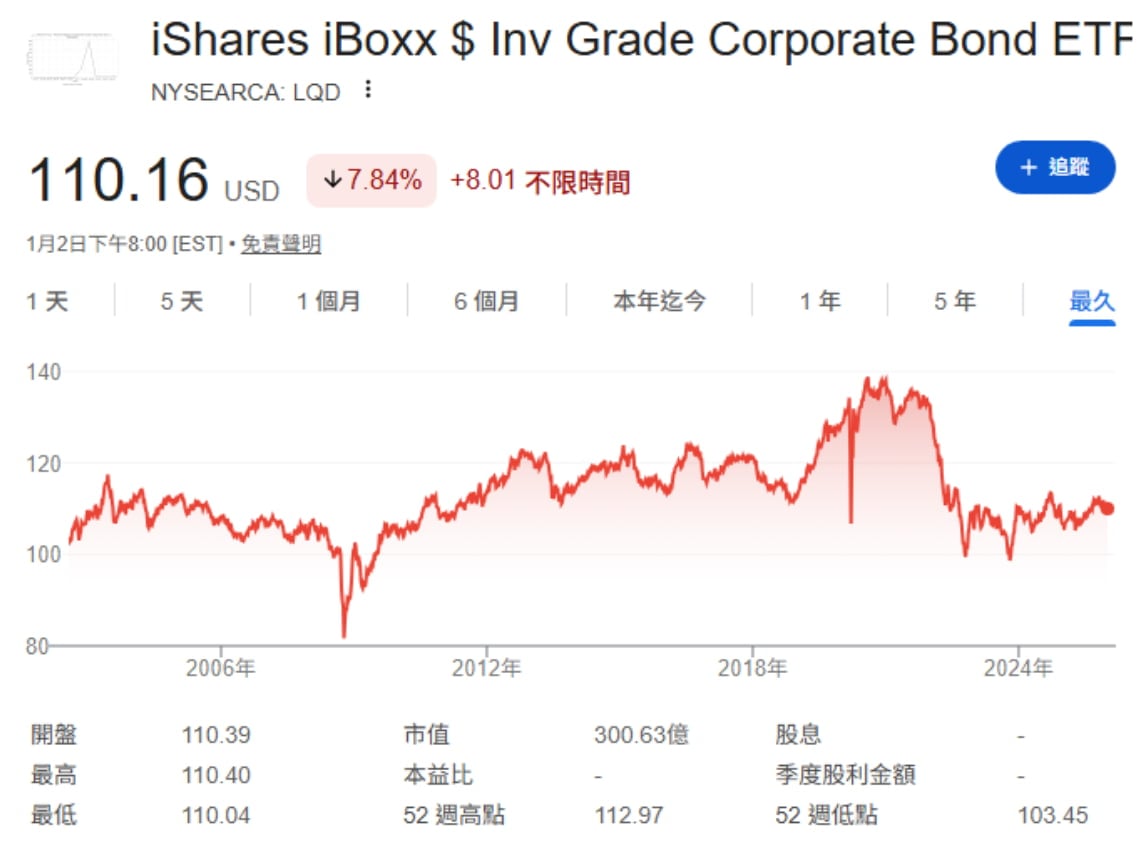 2. LQD - iShares iBoxx投資等級公司債券ETF