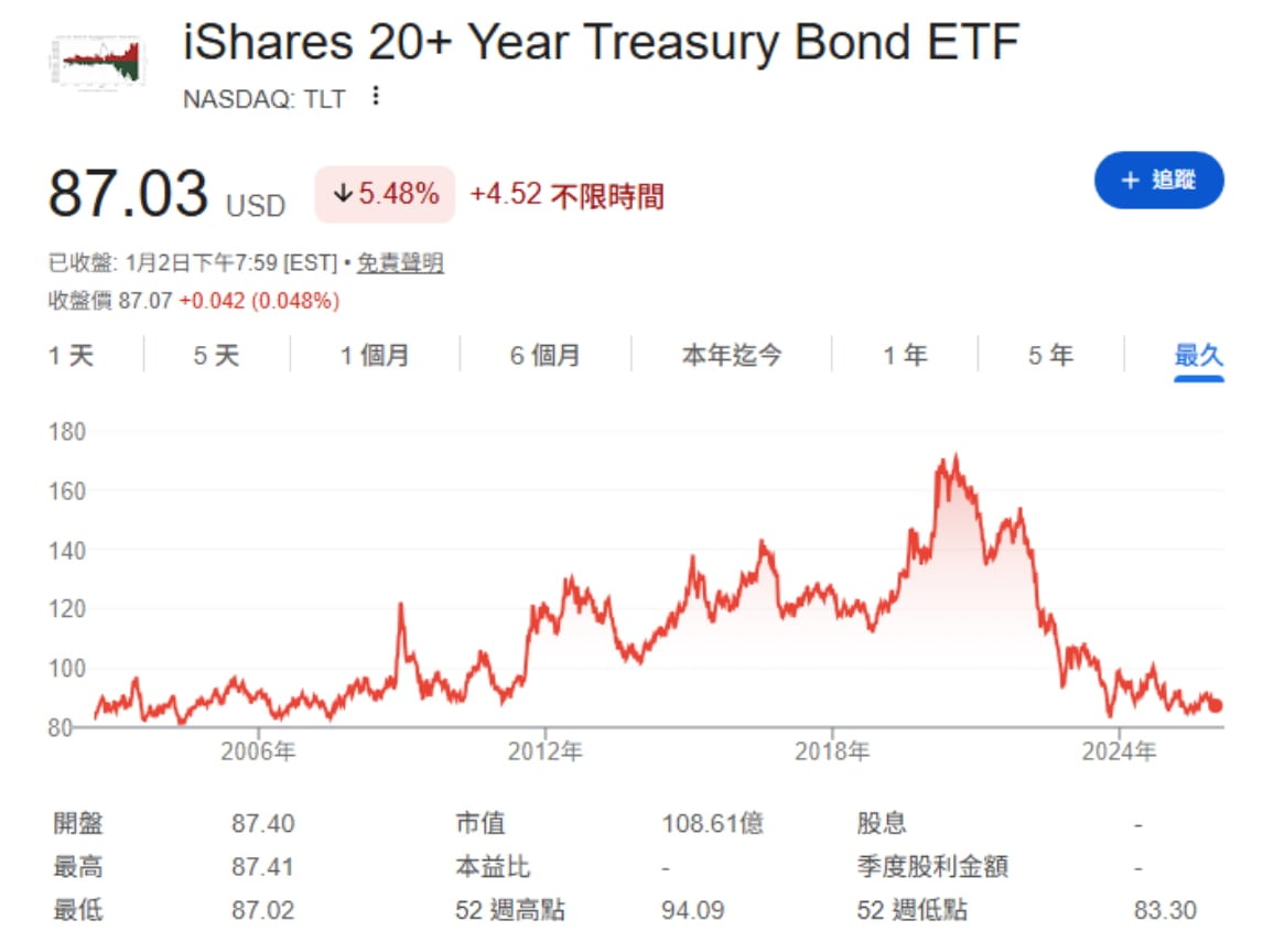 3. TLT - iShares 20年期以上美國公債ETF